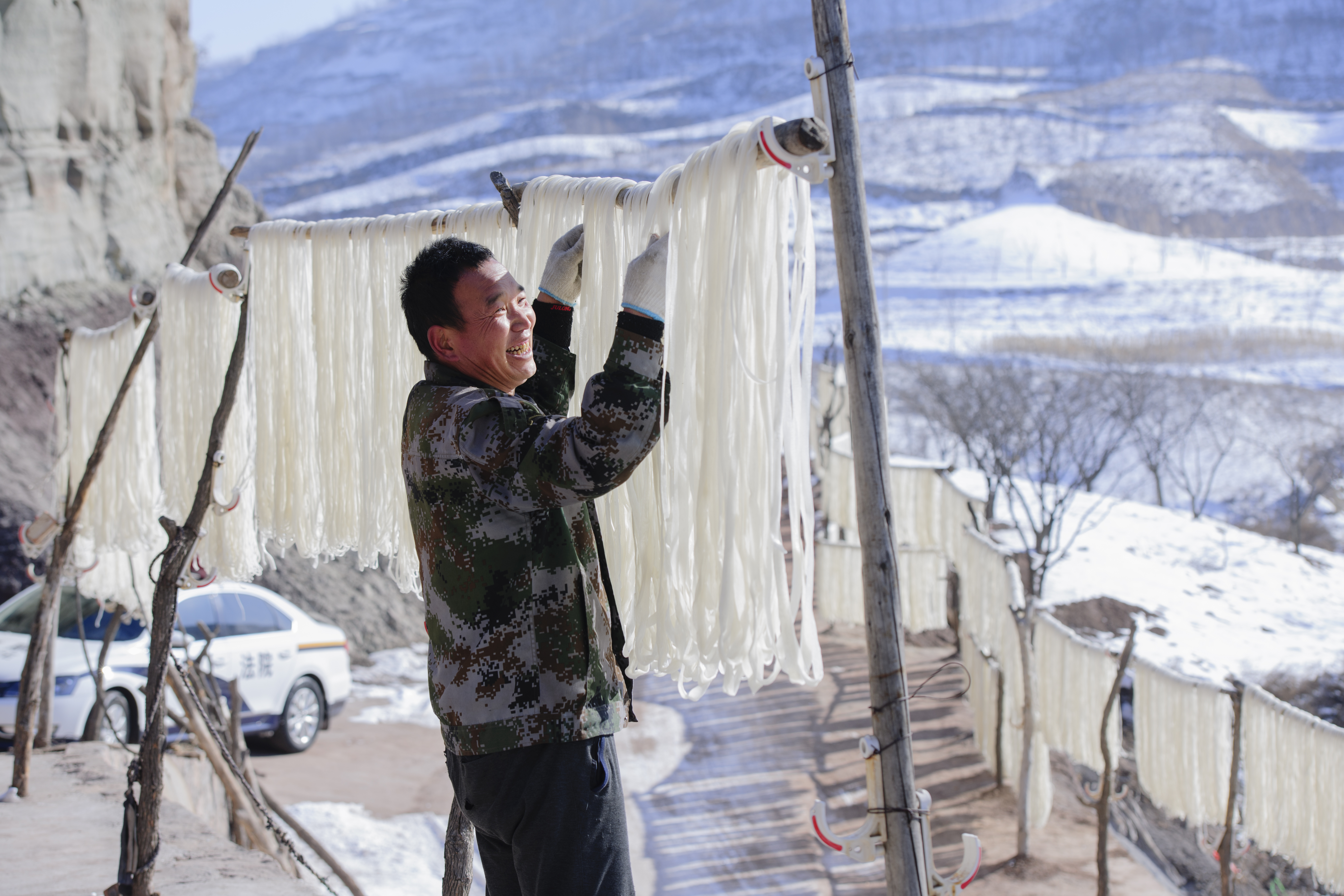 圖為工人正在晾曬粉條。 劉亮亮 攝