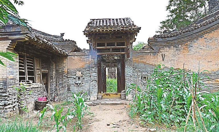 從正街往西有一座坐北朝南的清代三進(jìn)院建筑,原來門口有棵大槐樹,村里人稱“槐樹院”。一進(jìn)院東廂房南墻上建有照壁,磚雕椽飛、花卉、斗公式。東西廂房面寬三間,進(jìn)深三椽。二進(jìn)院東西廂房面寬四間,進(jìn)深三椽,均為單坡硬山頂,枋檁間有木雕花卉墊木,門窗仍為原有裝飾風(fēng)格。里院正房是中間三間大窯洞,兩側(cè)各一間小窯洞,有臺階上至窯頂,窯頂四周設(shè)花欄,倚欄而望全村景色一覽無余。大院正門在南廳東側(cè),兩邊一對有五尺多高的石獅。據(jù)說,每當(dāng)石獅頭上有水珠,天就會下雨,水珠小下小雨,水珠大就下大雨。正門臺階兩側(cè)有兩個長石椅,供人們閑談、休息。