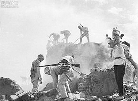 偽軍住的這個炮臺共有三層,第一層居住和辦公,第二層存放武器和彈藥,第三層是哨位。每兩層之間都開一個天窗可以上下出入,每天下午六、七點鐘即拉吊橋,任何人不得出入,九點鐘炮臺關門,任何人不得出院。那天晚上八點時分,兩個“買糧人”開始和偽軍正副隊長打牌,另一個和兩個班長在炕上抽大煙。到深夜十二點(約定好的時間),那個“買糧人”故意對偽班長說:“我抽得多了,頭痛想吐,請你把門開一下,我出院里風涼風涼?!蹦前嚅L說:“不行,誰也不能半夜出院,這是違紀。”那“買糧人”又說:“不讓出院,那就讓我去哨兵位上涼快涼快?!眰伟嚅L沒有表示許可,也沒有阻攔,只顧不要命地吸煙。他迅速爬上二層炮臺,把天窗門一鎖,底層打牌的“買糧人”見時機已到,就拔出手槍對正副隊長厲聲喝道:“告訴你們吧,今晚我們是收復炮臺來了,你們的武器已被我們封鎖了,現(xiàn)在外面都是八路軍,你們別想動一下?!蹦莻€上了二層的“買糧人”又很快上到三層,把放哨的偽軍抓住,從天窗口推到院子里。民兵在外面見哨兵一下來,就馬上命令放下吊橋,沖進院里。因天黑,炮臺內(nèi)偽軍根本看不清外面究竟是八路軍還是民兵,也不知道究竟來了多少,偽隊長只好乖乖地帶上他們的所有人馬排隊到了后山。三百余民兵都身背口袋蜂擁而進,每人背了一口袋糧食出來,然后用早已準備好的干柴堆在一起,把炮臺燒掉。