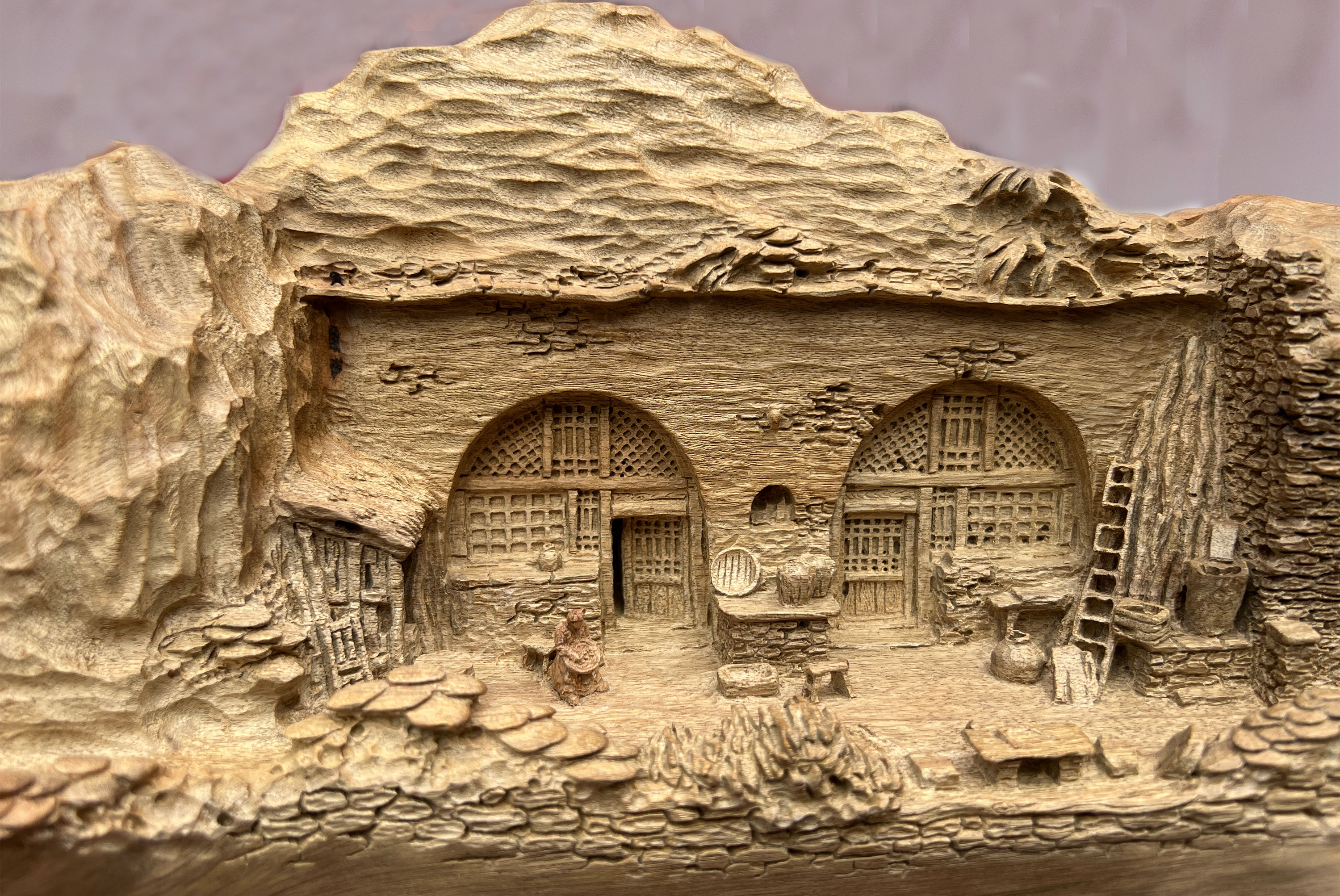 靜謐的大山里,有一座小院坐落其中,院內(nèi)不時(shí)傳出的敲打聲與鑿擊聲伴隨著朝霞與夕陽在這片黃土地上回蕩,日復(fù)一日,這里便是青年匠人高志靈創(chuàng)作木雕作品的地方,黃土地上的一景一物便是他的靈感來源,一件件黃河黃土風(fēng)情的木雕作品無聲表達(dá)著作者對家鄉(xiāng)的熱愛。