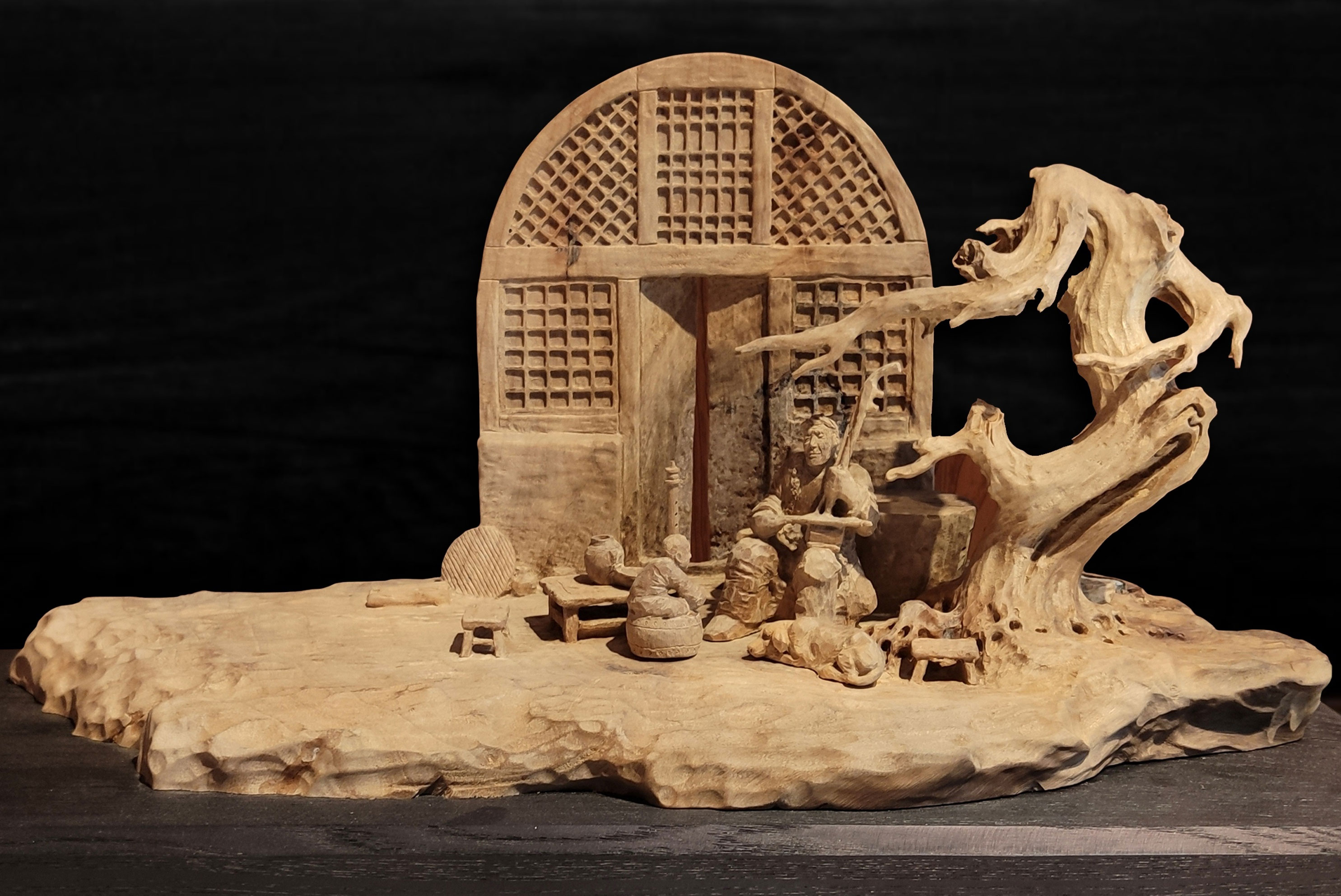 十八歲開始學(xué)習(xí)木雕的高志靈,師從中國木雕藝術(shù)大師胡先民。精通各種雕刻技法,擅于通過夸張、對比手法來表現(xiàn)事物的精氣神。多年來一直從事木雕藝術(shù)的研究與創(chuàng)作,作品多反映黃土高原和黃河岸邊的人文風(fēng)貌與生活場景,獨(dú)具地域特色。他最大的心愿就是能夠通過木雕讓更多的人認(rèn)識和喜愛他的家鄉(xiāng),從而深入了解黃河黃土文化。