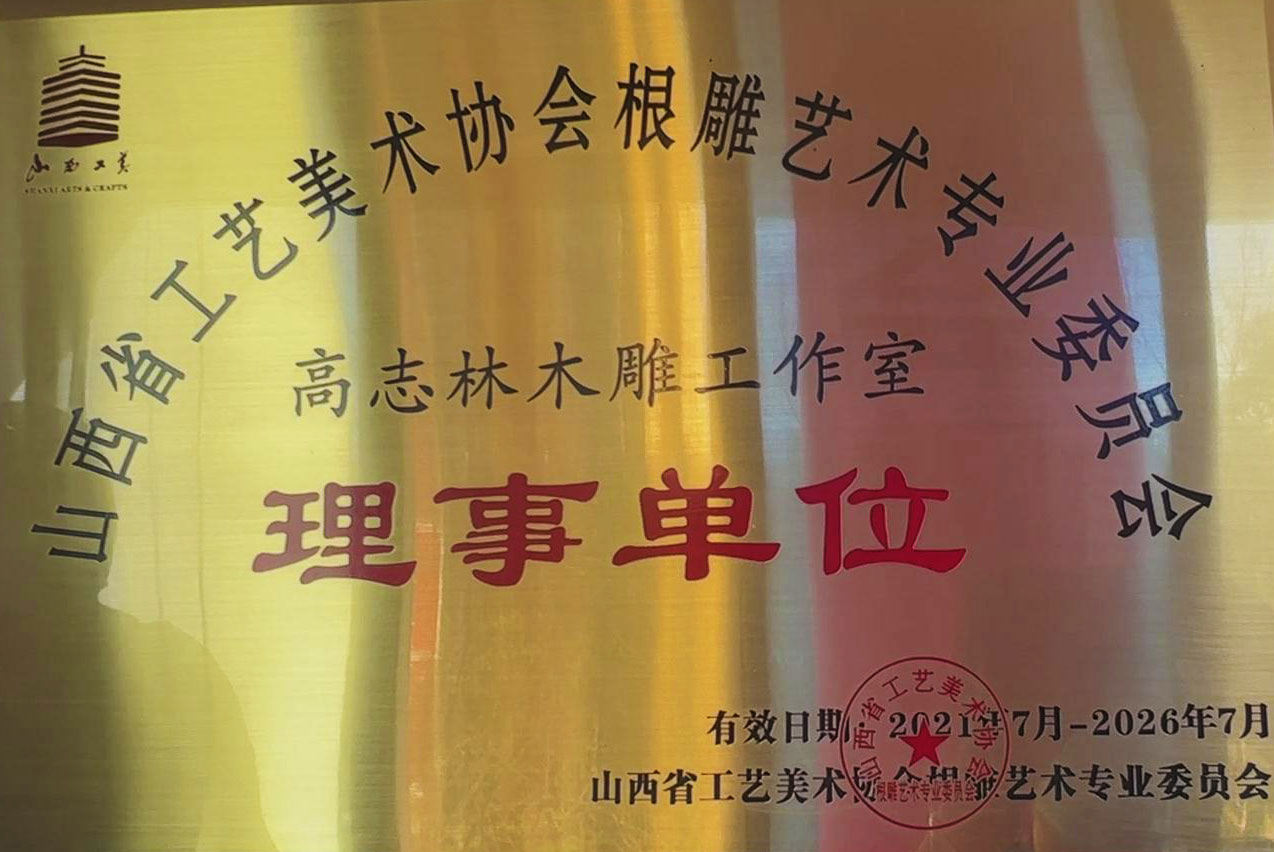 2021年7月高志林木雕工作室申請成為山西省工藝美術(shù)協(xié)會(huì)根雕藝術(shù)專業(yè)委員會(huì)理事單位。