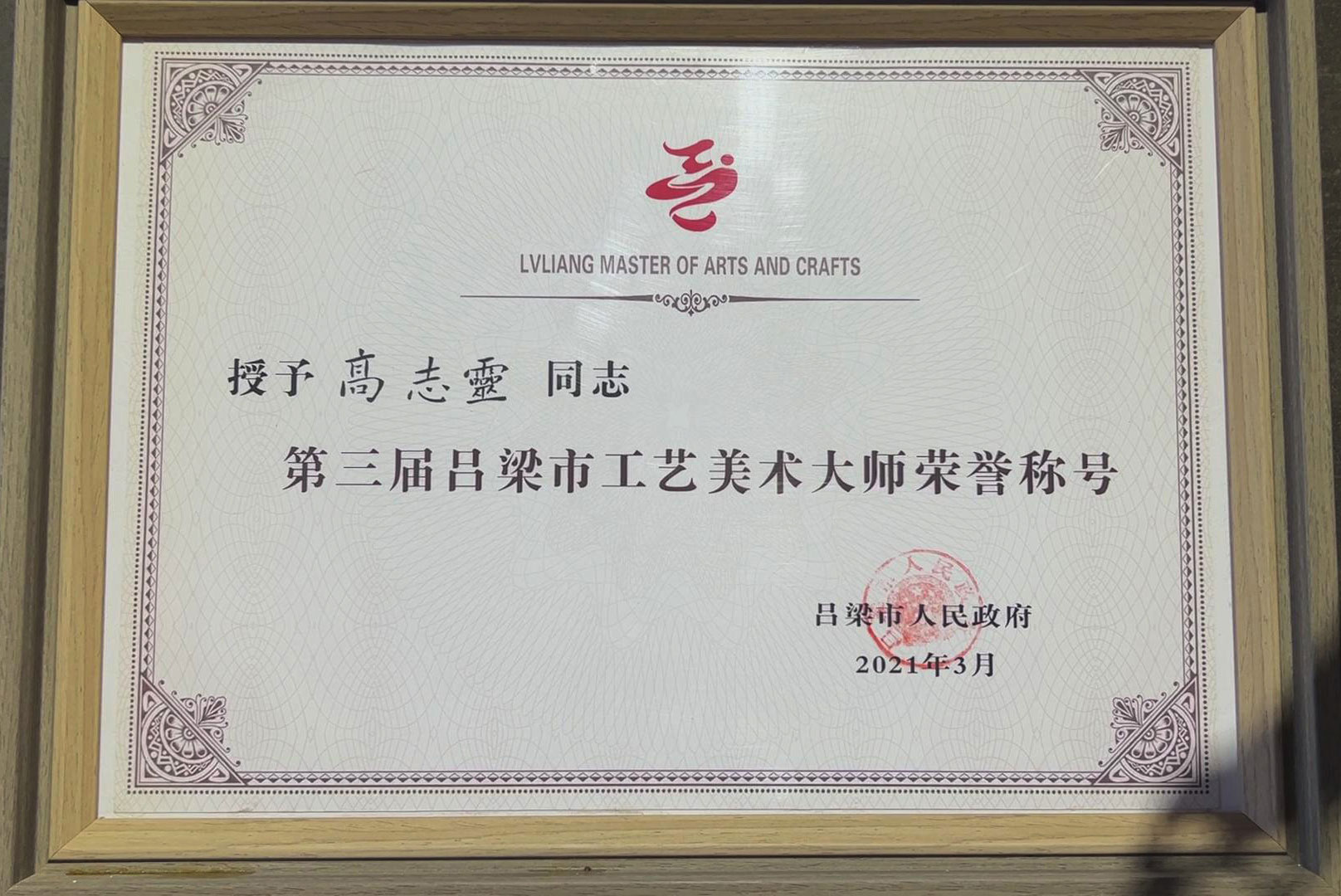 2021年3月被呂梁市人民政府授予“呂梁市工藝美術(shù)大師”榮譽(yù)稱號。