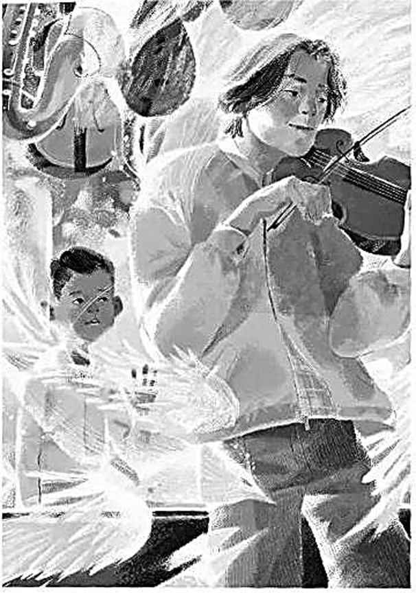 音樂元素在近年出版的原創(chuàng)兒童小說中并不少見。不少作品都不同程度涉及世界名曲、地方歌謠和樂理知識(shí)。相較而言,音樂在《手足琴》中并非簡(jiǎn)單的點(diǎn)綴,而是貫穿整個(gè)作品的重心。蕎麥的成長(zhǎng)歷程與音樂息息相關(guān):幼時(shí)聽過的那場(chǎng)交響樂演奏點(diǎn)燃了他對(duì)音樂的熱情,“國(guó)光牌”口琴讓他能夠真正吹奏出樂曲,而鷹頭琴和瓜奈里小提琴則幫助他在世界小提琴家的殿堂中占有一席之地……