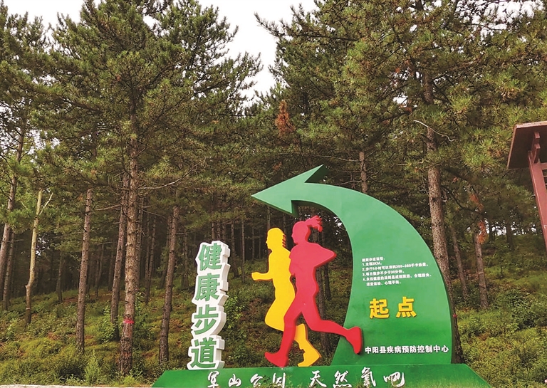 驅(qū)車從中陽(yáng)縣下棗林鄉(xiāng)軍山山腳下出發(fā),盤(pán)旋而上,山勢(shì)凌然,急彎坡長(zhǎng),四處楓葉灼灼、黃葉片片,一座背腹于山坳、錯(cuò)落有致且陽(yáng)光充足的森林公園呈現(xiàn)眼前。