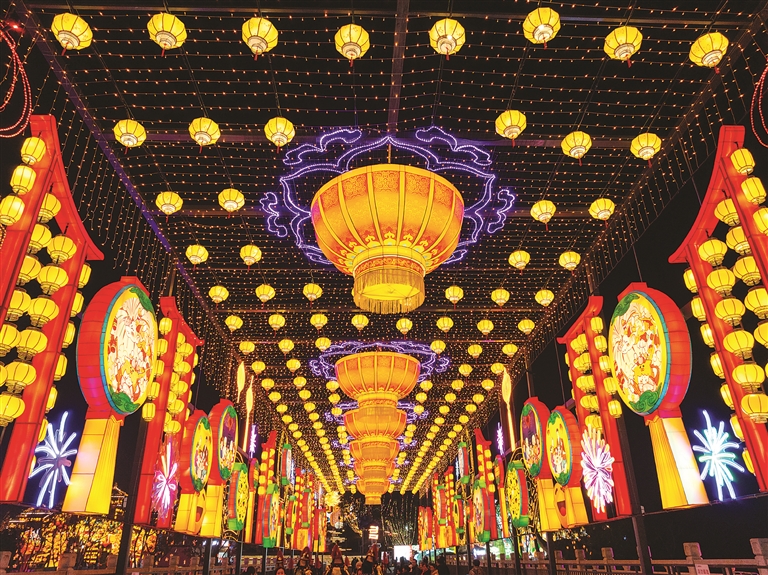 當(dāng)晚,在中華彩燈大世界舉辦的第30屆自貢國際恐龍燈會亮燈。據(jù)了解,將于2月2日正式對公眾開放的本屆燈會打造了華夏樂章、盛世歡歌、年味中國、浪漫中國4大版塊,用上千個燈組將中華文化融入彩燈之中,讓觀眾在賞燈的同時領(lǐng)略文化的魅力。 新華社記者 沈伯韓 攝