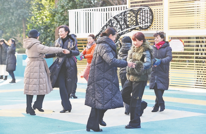 圖②浙江湖州,市民在社區(qū)體育公園健身休閑。