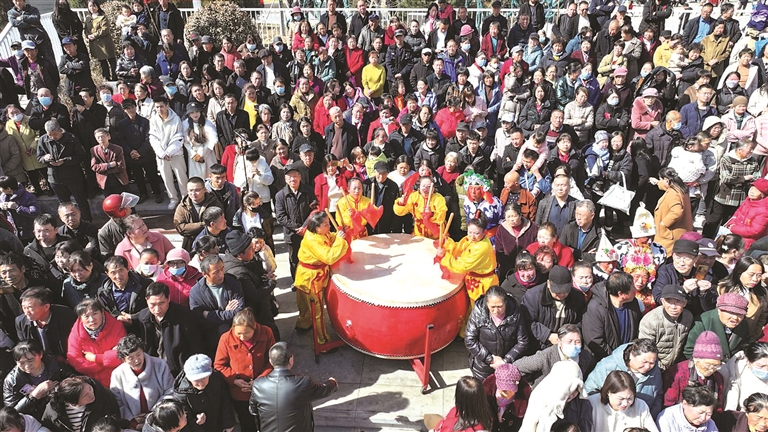 在鏗鏘的鼓點聲中,一條條巨龍騰挪翻飛、上下舞動,展現(xiàn)出金龍擺尾、龍身彎繞、龍頭昂揚等多種造型,充分展示了龍的精、氣、神、韻,通過民間傳統(tǒng)方式,祈佑新的一年風(fēng)調(diào)雨順、五谷豐登。秧歌隊伍的演員們身穿喜慶艷麗的服飾,舞彩緞、打花傘,精神抖擻、步伐穩(wěn)健,為喜迎春日時節(jié)添彩助興。鑼鼓、秧歌、舞龍舞獅等多種傳統(tǒng)民俗文化依次亮相,現(xiàn)場一片歡樂祥和的節(jié)日氛圍,吸引了眾多市民前來感受濃濃的傳統(tǒng)文化。