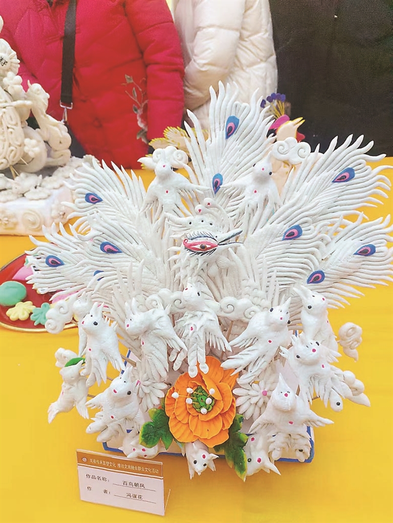 嵐縣面塑的工藝更是獨具匠心。其技藝上最突出的特點是生熟面結(jié)合、發(fā)面與死面結(jié)合,作品造型簡潔渾厚中凸顯粗獷,樸實典雅里透著精巧艷麗,具有整體夸張變形與局部細膩傳神的藝術(shù)效果。制作工序復雜,從和面、塑型、蒸制到插花著色都有著嚴格的講究,塑型手法有搓、捏、搟、拍、拉等數(shù)十種之多。制作工具有瓷盆、面案、剪刀、竹簽、切刀、筷子、鑷子、勺子、細齒梳子、搟面杖、高粱稈、大頭針等,輔料有紅棗、紅豆、黑豆、染成紅色的麥粒、高山花黃籽等。每一個面塑,都承載著創(chuàng)作者的心血與智慧,是嵐縣人民對生活的熱愛與對藝術(shù)的執(zhí)著追求。