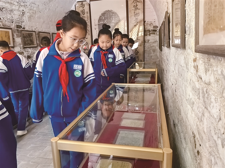 上午9時,紀(jì)念活動在雄壯的國歌聲中拉開帷幕。千名師生肅立烈士樓前,齊聲高唱國歌,鏗鏘旋律回蕩在烈士樓上空。離石烈士樓晉綏兵民博物館館長郝宏武向師生們動情講述離石烈士樓的厚重歷史:“離石烈士樓始建于明代,原為關(guān)帝樓。1949年,為緬懷革命先烈,教育后人,離石縣政府將關(guān)帝樓改建為烈士樓,記載烈士1507名?,F(xiàn)樓內(nèi)遺存最有價值的抗戰(zhàn)題材壁畫,以連環(huán)畫的形式,真實(shí)地展現(xiàn)了當(dāng)時離石轄區(qū)內(nèi)的抗戰(zhàn)故事,充分展示了革命先烈同敵偽英勇斗爭的生動場面,每一幅壁畫即一個故事,給后人留下了難以忘卻的記憶?!彪S著講解,孩子們凝視著烈士樓內(nèi)的壁畫,眼神中滿是崇敬。