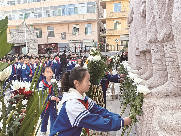 隨后,在深情的《獻(xiàn)花曲》中,師生們緩步走向烈士紀(jì)念碑,將一束束白菊輕放于碑前。孩子們還在80米長的紅色橫幅上,用稚拙的筆跡寫下自己的名字以及“英雄永垂不朽”“做新時代接班人”等真摯寄語,有的還畫上了小小的五角星。五年級學(xué)生成錦繡哽咽道:“原來英雄不是課本里的插圖,他們和我們一樣會想家,但選擇了為國家犧牲。”