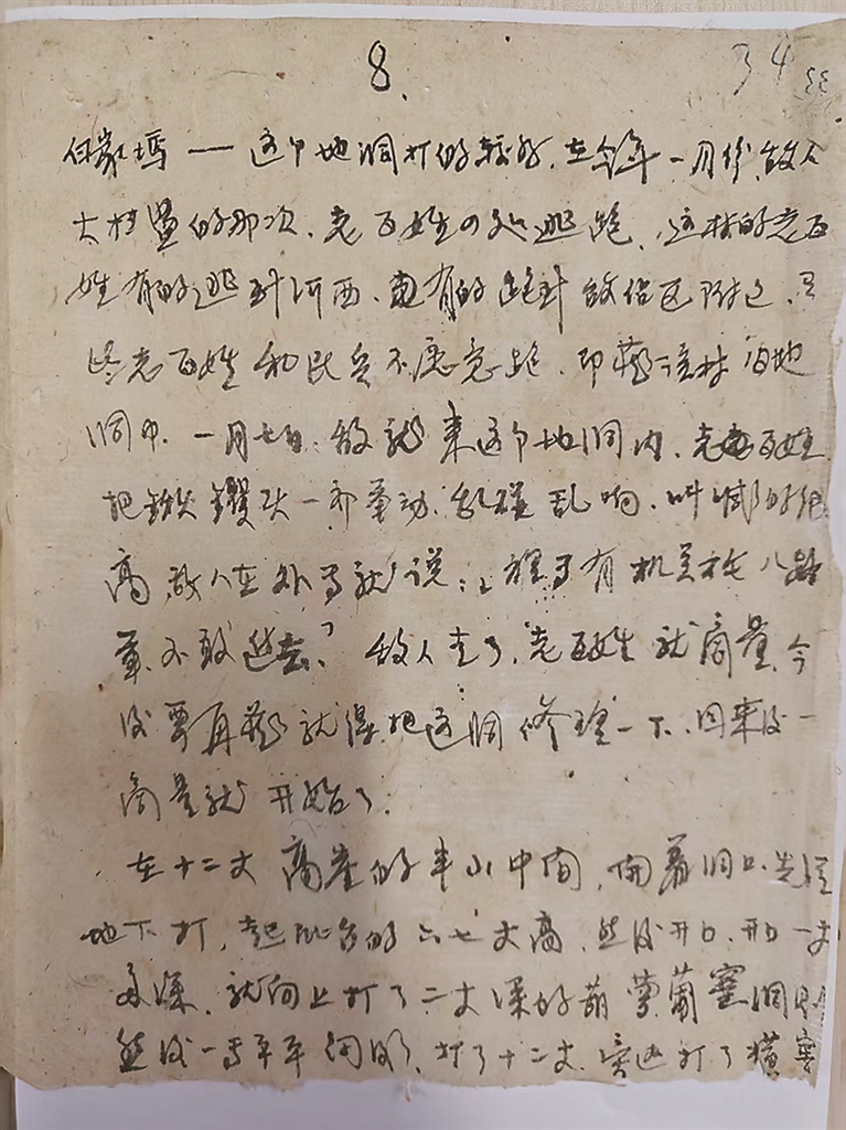 方山縣檔案館珍藏的檔案《離石縣地洞斗爭(zhēng)》,檔號(hào)為003-1·1·1-001,生動(dòng)展現(xiàn)了抗戰(zhàn)時(shí)期離石縣軍民依托地洞開展的英勇斗爭(zhēng)。1937年7月23日,毛澤東在《反對(duì)日本進(jìn)攻的方針、辦法和前途》中明確指出:“確定游擊戰(zhàn)爭(zhēng)擔(dān)負(fù)戰(zhàn)略任務(wù)的一個(gè)方面,使游擊戰(zhàn)爭(zhēng)和正規(guī)戰(zhàn)爭(zhēng)配合起來?!痹谶@一戰(zhàn)略方針指引下,抗日根據(jù)地軍民創(chuàng)造出地雷戰(zhàn)、地道戰(zhàn)等戰(zhàn)法,離石縣的地洞斗爭(zhēng)便是晉西北因地制宜的典型實(shí)踐,凝結(jié)著軍民智慧。