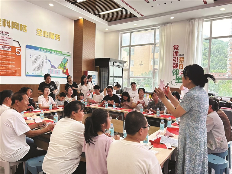 在中陽縣,千年非遺剪紙藝術(shù)正以嶄新的文化姿態(tài)融入當(dāng)代社會(huì),被賦予傳承與創(chuàng)新的雙重使命。剪刀與紅紙的交匯,不僅延續(xù)著傳統(tǒng)紋樣的玲瓏剔透,更剪出了一條跨越代際、融合城鄉(xiāng)的文化治理新路徑。近年來,在新時(shí)代文明實(shí)踐體系的推動(dòng)下,“紙上生花·剪映中陽”非遺傳承項(xiàng)目憑借三維服務(wù)體系,成功推動(dòng)剪紙藝術(shù)從博物館展柜、書本名錄走向街頭巷尾,深度嵌入社區(qū)肌理與百姓生活,實(shí)現(xiàn)了非遺從“被認(rèn)知”到“被參與”的深刻轉(zhuǎn)變。