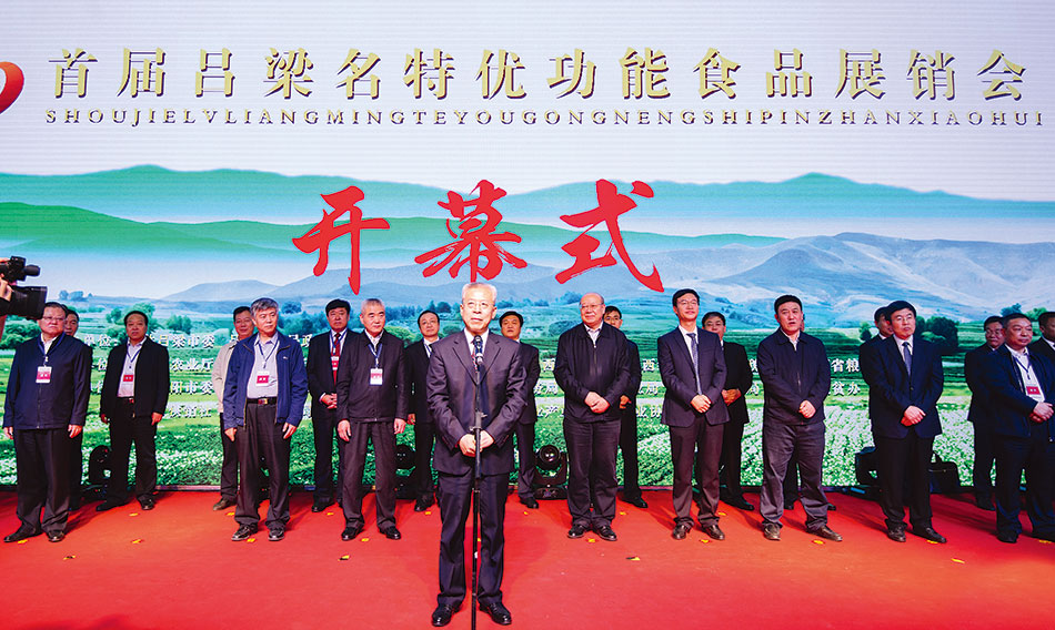 省政協(xié)副主席、市委書記李正印宣布首屆呂梁名特優(yōu)功能食品展銷會(huì)開幕。記者 劉亮亮 攝