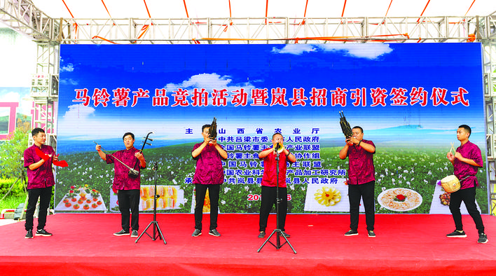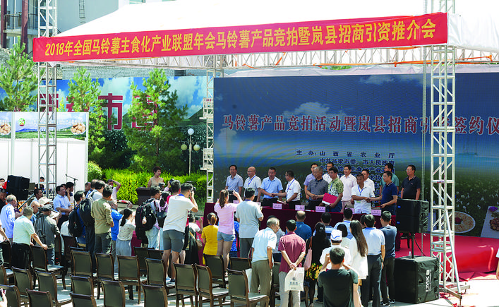 2018年全國馬鈴薯主食化產(chǎn)業(yè)聯(lián)盟年會馬鈴薯產(chǎn)品競拍暨嵐縣招商引資推介會。記者 劉亮亮 攝