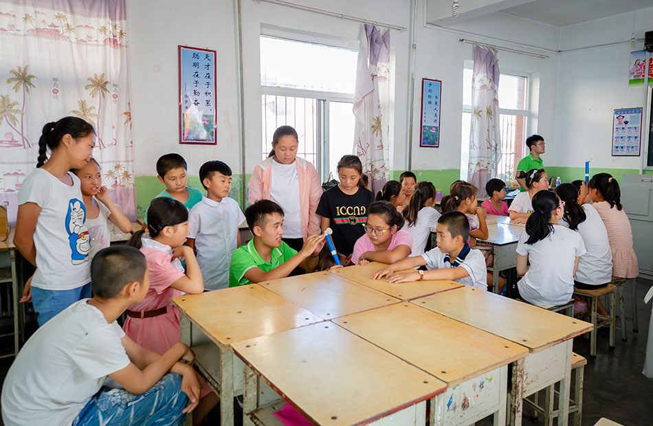 和以往相比,今年,臨縣朱家會(huì)小學(xué)孩子們的暑期生活,有些不一樣。不是整天的看電視、打游戲,而是圍坐在教室里學(xué)趣味英語(yǔ)、做科學(xué)實(shí)驗(yàn),唱歌、畫畫、練書法,還學(xué)了自己學(xué)校不曾開(kāi)設(shè)過(guò)的心理知識(shí)和法律常識(shí),課堂上互動(dòng)熱烈,笑聲不斷!原來(lái)是,山東理工大學(xué)“守望麥田實(shí)驗(yàn)團(tuán)”的29名大學(xué)生來(lái)這里開(kāi)展了為期10天的支教活動(dòng)!記者 劉亮亮 喬鵬華 攝