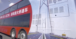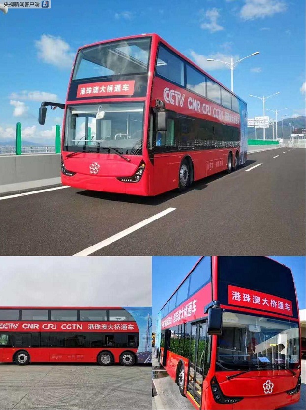 中央廣播電視總臺巴士成為第一輛駛上港珠澳大橋的大巴