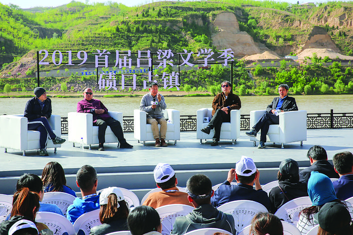 呂梁文學(xué)季,那是一個盛會,厚重古樸的文學(xué)和厚重古樸的磧口聯(lián)姻,讓人突然明白,從今天起,文學(xué)要從這里出發(fā)。不禁想起古人崔炳文的詩句“物阜民豐小都會,河聲岳色大文章”,感佩古賢的如此先見。遠流湫水,近淌黃河,今天,當詩人面河而詠,巧了,主持人就叫歐陽江河?!疤烊缢v浪,磧遠有高峰”,詩人剛剛詠出,黃河遠處的皮艇上便傳來一青年的高歌,“峰高有遠磧,浪騰水如天”,又是一巧,巧的不單是詩的回文,更巧在詩人與船夫的呼應(yīng)。詩人,黃河,磧口,船夫,幾個字詞在陽光下格外亮麗,回頭望去,古街上的明磚清瓦回射出默默的凝重。