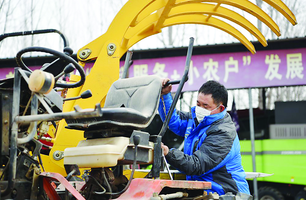 2月27日,河北省定州市信聯(lián)農(nóng)機(jī)專業(yè)合作社農(nóng)民在檢修農(nóng)機(jī)。