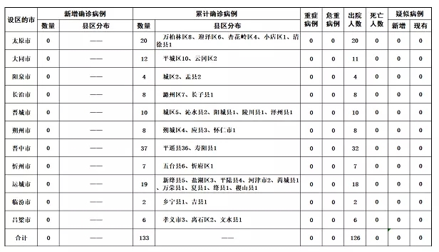 晉中市37例(平遙縣36例、壽陽縣1例)