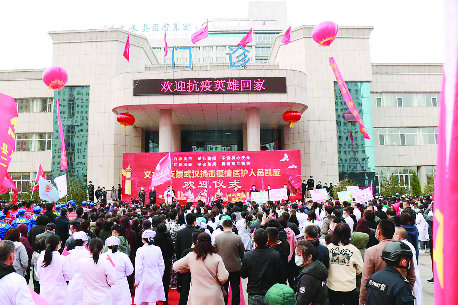 文水縣舉行儀式歡迎支援湖北的成學華、 劉月云、李鳳嬌3名醫(yī)護人員凱旋