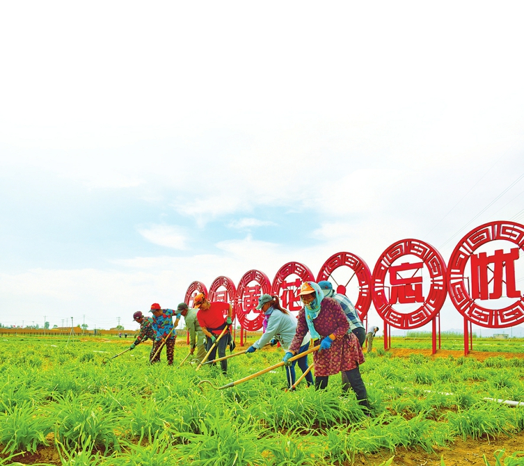 習(xí)近平總書記視察唐家堡黃花基地后,極大鼓舞了當(dāng)?shù)厝罕姷母蓜?,他們表示,要進(jìn)一步擴(kuò)大種植面積,延伸產(chǎn)業(yè)鏈條,提高黃花附加值,暢通銷售渠道。圖為5月14日下午,村民們正在為黃花松土、除草。 記者馮文戰(zhàn)攝