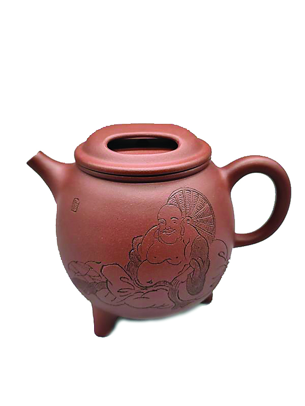 在紫砂壺的陶刻銘文之中,也有諸多禪機(jī)偈語。如著名的“曼生十八式”之一《箬笠壺》銘文為:“笠陰公式,茶去渴;是二是一,我佛無說?!币馑际钦f:笠帽可以遮陽防暑,而茶水可以去暑解渴,如今我用的是形似斗笠的茶壺,那這功能“是二”還“是一”呢?其中的玄機(jī)只可意會,不可言傳也。還有原中國佛教協(xié)會會長趙樸初居士的《詠茶》絕句:“七碗受至味,一壺得真趣??粘职偾з?,不如吃茶去?!边@首充滿禪機(jī)的茶詩成為絕佳的紫砂壺銘文,“一壺得真趣”可謂是一語中的,很好地把紫砂壺與佛教文化的因緣詮釋出來。